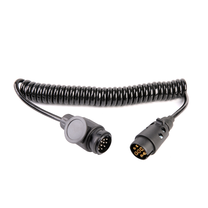 7पोल ब्लैक पीयू स्पाइरल कॉइल, 2प्लग JH003, JH008, केबल लंबाई 1m,2m,3m...JH020-C OEM/ODM